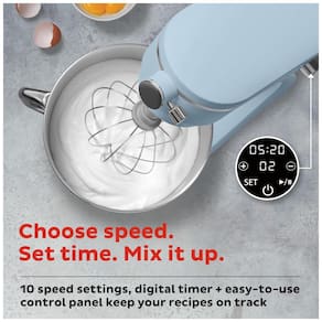 A série Pro da Batedeira Instant Pot Stand Mixer tem potência suficiente para lidar com qualquer tarefa de mistura, utilizando 600 watts de energia. O acabamento clássico em Azul combina perfeitamente com uma cozinha moderna e elegante. Projetamos essa batedeira para ser fácil de usar, com 10 configurações de velocidade e um timer digital que pode contar para cima ou para baixo. A grande tigela de mistura de 7,4 litros enfrenta até mesmo receitas superdimensionadas, mas o design leve da batedeira é fácil de transportar, sendo 19% mais leve que a principal batedeira de mesa. O conjunto inclui pá de mistura, gancho para massas e batedor de aço inoxidável, que são seguros para lava-louças, facilitando a limpeza. DESEMPENHO PODEROSO: O motor de 600 watts permite lidar com diversas tarefas, desde bater o merengue mais suave até amassar a massa mais densa. INTERFACE DIGITAL: As 10 configurações de velocidade e o timer digital proporcionam uma ótima experiência ao seguir receitas ou criar suas próprias misturas. O timer regressivo interrompe a batedeira ao chegar a zero, acabando com o excesso de mistura. CONSTRUÇÃO ROBUSTA: Carcaça de metal fundido para durabilidade e beleza duradoura. FÁCIL LIMPEZA: Tigela de mistura,pá de mistura, gancho para massas e batedor em aço inoxidável. ACESSÓRIOS INCLUSOS: Acompanha 1 tigela de mistura de aço inoxidável, 1 pá de mistura, 1 gancho para massas, 1 batedor e uma proteção removível contra respingos. EXPANSÍVEL: Hub de energia permite o uso de acessórios opcionais como moedor de carne ou extrusora de massa (vendidos separadamente). RECURSOS DE SEGURANÇA INTEGRADOS: Criado com segurança em mente, nossa batedeira possui um recurso de desligamento automático e mais. DESCOBRA RECEITAS INCRÍVEIS: Inclui o aplicativo Instant Brands Connect, onde você pode encontrar novas receitas, criar favoritos rápidos e preparar refeições deliciosas. Disponível para iOS e Android.