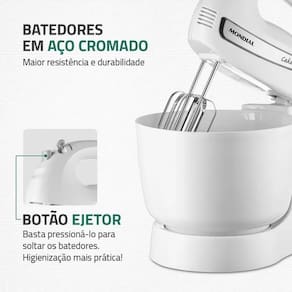 A Batedeira Mondial Cake Inox Premium B-50-W é perfeita para quem busca praticidade, desempenho e resultados homogêneos. Com 500W de potência, 4 velocidades e função turbo, ela garante massas fofinhas, claras em neve perfeitas e cremes no ponto certo. A tigela de 4 litros oferece alta capacidade para preparar receitas em porções maiores. Conta ainda com batedores em aço cromado, mais duráveis e resistentes, botão ejetor, sistema exclusivo de fixação Mondial e base com roldanas, que facilita o giro da tigela. Para completar, acompanha uma espátula prática para aproveitar 100% da massa.