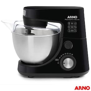 Para quem produz pães e massas pesadas com frequência, a nova Arno Planetária Deluxe é ideal. Além de um design ainda mais moderno e roupagem contemporânea com detalhes metálicos, a Planetária alia praticidade e eficiência - bate, mistura, amassa e sova a massa rapidamente, deixando-a homogênea, até mesmo a mais pesada. O produto possui 500W de potência, três tipos de batedores em metal para os diferentes tipos de massa (o globo para incorporar ar, a pá para misturar e o gancho para massas pesadas), sistema de oito níveis de velocidade com início suave (velocidade inicial mais lenta, para evitar respingos).