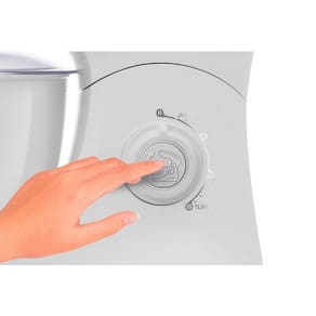 BOTÃO EJETOR E TRAVA DE ABERTURA A praticidade está ainda mais presente com o botão ejetor de batedores, que facilita a troca e limpeza dos acessórios, e a trava de abertura da cabeça, que garante segurança e estabilidade durante o uso.