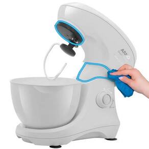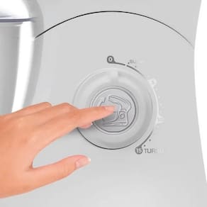 BOTÃO EJETOR E TRAVA DE ABERTURA A praticidade está ainda mais presente com o botão ejetor de batedores, que facilita a troca e limpeza dos acessórios, e a trava de abertura da cabeça, que garante segurança e estabilidade durante o uso.