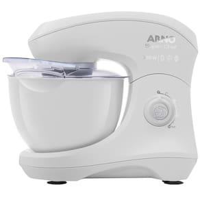 Completa, a Batedeira Arno vem com 3 batedores: para massas pesadas, médias ou leves. O início super suave permite que os ingredientes se misturem de forma eficiente evitando respingos e a função turbo alcança claras em neve em até 1 minuto!
