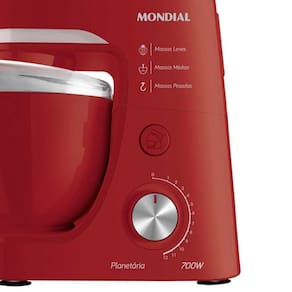 A Batedeira Planetária Mondial combina potência e com alta capacidade para que possa preparar receitas deliciosas para toda sua família. Sua tigela com capacidade para até 4,5 litros e encaixe fácil, possibilita que faça receitas com grande quantidade de ingrediente com praticidade e agilidade. Essa batedeira planetária possui alta performance para bater de massas leves, médias e pesadas com precisão. Com 12 velocidades e 3 tipos de batedores, a batedeira planetaria mondial é a escolha perfeita para preparar claras em neve, bolos, cremes, pães e muito mais, de forma rápida e eficiente. Seu design moderno conta com detalhes em inox que proporcionam sofisticação e durabilidade para a sua cozinha. Essa batedeira planetaria vermelha conta ainda com tampa anti respingos na tigela, que além de auxiliar na adição de ingredientes durante os preparos, evita que o ambiente suje com respingos das massas. Para um manuseio prático da melhor batedeira planetária, ela possui sistema de abertura e encaixe dos batedores fáceis. Seus pés possuem ventosas que garantem mais segurança durante o uso. Se surpreenda com a Batedeira Planetária BP-03 Mondial. Cor: Vermelho Voltagem: 127V