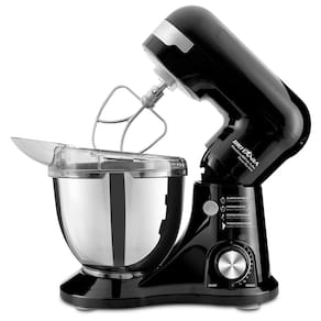 A tigela Inox tem capacidade para 4 litros e movimento planetário que mistura os ingredientes de forma homogênea. Já a tampa antirrespingo permite adicionar ingredientes durante o preparo e manter a limpeza da cozinha sem deixar a massa respigar para todo lado.