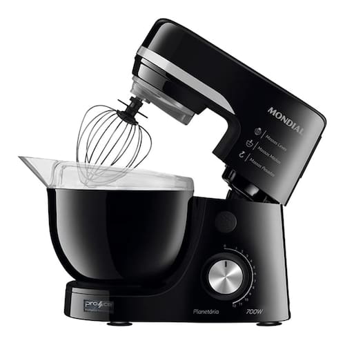 Especificações: - Itens inclusos: 01 Batedeira Planetária; 01 Batedor de Massas Leves; 01 Batedor de Massas Médias; 01 Batedor de Massas Pesadas e 01 Manual de instruções - Número de velocidades: 12 - Capacidade em litros: 4,5L - Tipo de tomada: 10A - Alimentação: 700W - Tipo de batedores: 3 (Massas leves, médias e pesadas) - Quantidade de tigelas: 1 - Comprimento do cabo: 1,50m - Peso: 3,32,Kg - Dimensões do produto: 33,5cm x 22cm x 38cm (AxLxP)