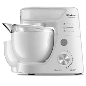 Prepare receitas incríveis com mais praticidade e potência! A Batedeira Planetária Mondial Premium alia desempenho, elegância e versatilidade para transformar seu dia a dia na cozinha. Com 700W de potência, duas tigelas de 4,5L e movimento planetário, ela garante misturas mais homogêneas e volumosas, ideal para massas leves, médias e pesadas.