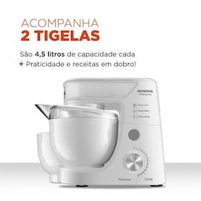 Leve mais praticidade para sua cozinha! Garanta agora a sua Batedeira Mondial Planetária Premium e eleve o nível das suas receitas com potência, capacidade e estilo. Ideal para quem ama cozinhar e exige resultados perfeitos!