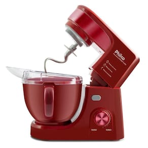 Transforme sua rotina com a Batedeira Planetária Philco 4,5L Turbo Red 700W PHP500V e descubra o prazer de cozinhar com praticidade e estilo.
