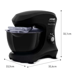 Batedeira Planetária Superchef Arno KM01 Preto 220V A melhor planetária já feita pela Arno com alta potência de 750W e 15 velocidades para resultados perfeitos e mais rápidos! Possui 1 tigela de 5L para o preparar até o dobro de uma receita além de ter resistência térmica - pode ser levada diretamente ao freezer ou micro-ondas! Design exclusivo, botão integrado multi velocidades + trava de abertura, tampa anti respingo que além de maior praticidade e menos sujeira, possui o bocal exclusivo com uma maior abertura para facilitar a inclusão de ingredientes. Completa, com 3 batedores - para massas pesadas, médias ou leves além do início supersuave que mistura os ingredientes de forma eficiente evitando respingos + função turbo alcance para claras em neve em até 1 minuto! Além disso, o batedor para massas leves fica mais rente à tigela permitindo bater apenas 1 clara em neve, garantindo um menor desperdício e otimização de receitas menores.