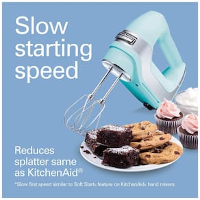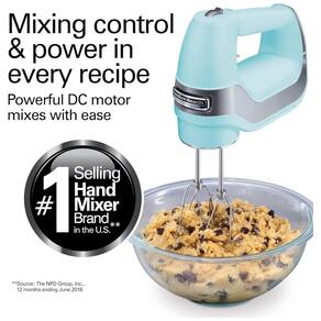 Motor DC para uma mistura manual poderosa e sem esforço. A batedeira de nível profissional tem um motor mais leve e design ergonômico. A velocidade inicial lenta evita respingos com uma velocidade inicial que é lenta o suficiente para misturar os ingredientes sem bagunçar ao assar. Estojo de zenamento snap on com batedores e batedeira. Mantém tudo em um só lugar. Os acessórios de aço inoxidável podem ser lavados na máquina de lavar louça. 5 velocidades com Quick Burst em todos os níveis. Para mais controle em todas as velocidades. Cabo giratório para uso com a mão direita ou esquerda. O cabo se ajusta e trava no lugar para ficar fora do seu caminho