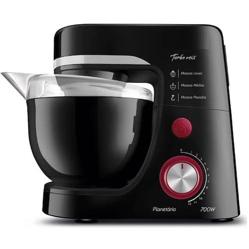 Com uma tigela grande de 4,5L, a batedeira planetária tem 12 velocidades e 3 tipos de batedores, para massas leves, médias e pesadas. Ela conta com 700W de potência, sistema de abertura automática e tampa antirrespingos. Esta batedeira planetária traz a união de potência com performance, o que faz dela a melhor opção para preparar desde bolos como de chocolate e de fubá, até as massas mais pesadas, inclusive de pão. Quer saber qual a diferença da batedeira planetária? Seu batimento gira ao redor de si e da tigela ao mesmo tempo, garantindo que os ingredientes da sua receita sejam misturados de forma homogênea e com mais rapidez. Sua TIGELA comporta receitas com muitos ingredientes. Ela acompanha uma espátula que ajuda você a retirar todo restinho da massa que ficar na tigela. O sistema de abertura automática e tampa antirrespingos permitem você acrescentar ingredientes sem ter que desligar.