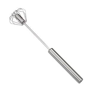 Batedor misturador culinário em aço inoxidável com design giratório para misturas rápidas e uniformes. Possui cabo anatômico em inox, leve e firme, garantindo maior controle no uso. Ideal para bater ovos, misturar massas leves e preparar bolos. Perfeito para uso doméstico ou profissional em confeitaria, panificação e culinária em geral.Acompanha copo