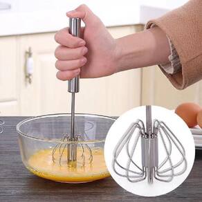 Batedor misturador culinário em aço inoxidável com design giratório e cabo anatômico. Ideal para bater ovos, misturar massas leves e preparar bebidas e cremes. Leve e fácil de manusear.Acompanha copo