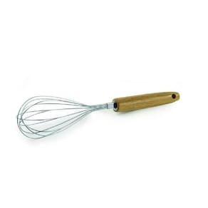Medida total do produto: 30 cm x 5,8 cm Medidas do Batedor: 17 cm Medidas do Cabo: 13 cm Composição do batedor: Aço Inox Composição do Cabo: madeira