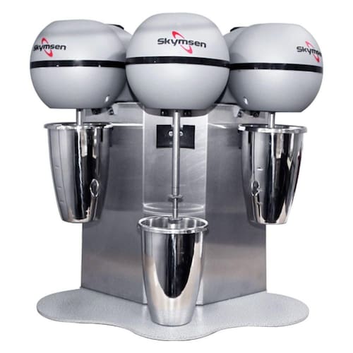 Batedor de Milk Shake 3 Hastes com Copo Inox BMS Skymsen. Seja durante o verão, ou mesmo nos períodos mais quentes do ano, um dos produtos que fazem o maior sucesso de vendas é o milkShake. Saborosa e refrescante, essa bebida tem forte apelo com públicos de todas as idades, sendo presença certa no cardápio de sorveterias, bares, restaurantes, lanchonetes ou fast foods. Para auxiliar estes estabelecimentos no atendimento aos seus clientes, a Skymsen apresenta a Máquina de MilkShake. Um equipamento robusto e de grande qualidade, o batedor de MilkShake da loja Skymsen proporciona o máximo em praticidade no preparo da bebida, contendo três hastes que permitem a produção simultânea de mais de um milkshake ao mesmo tempo, podendo inclusive ser batido no próprio copo plástico para agilizar ainda mais o atendimento. O equipamento conta com uma base reforçada para maior estabilidade durante o seu funcionamento. A praticidade, aliás, é um dos pontos fortes desta máquina, conta com 3 motores independentes, podendo ser juntos ou não, também permite que o operador movimente o copo durante o preparo, além de possibilitar o preparo direto no copo de servir. POTÊNCIA NOMINAL: 600 W/200W 3x. POTÊNCIA DO MOTOR: 500 W (3x). CONSUMO: 0,2 kWh (3x). ROTAÇÃO: 15.000 rpm. VOLUME MÁXIMO DO COPO: 0,8 L (3x). PESO: 10,30 kg. DIMENSÕES(CxAxL): 56x51x34cm. Batedor de Milk Shake 3 Hastes com Copo Inox Skymsen BMS é na Atau.