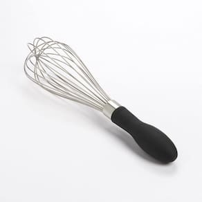 Batedor Em Aço Inox 27cm Balloon Oxo Desenvolvido pela Americana OXO Good Grips, batedor em aço inox com cabo macio e emborrachado que proporcionam o manuseio seguro da peça. Projetado com design funcional para um perfeito movimento de rotação, obtendo cremes lisos e homogêneos sem deixar caroços graças a flexibilidade dos fios que alcançam todo interior do recipiente, além de fácil higienização. Perfeito para ovos, chantilly, massas de bolo, entre outros alimentos.Ficha técnica:- Código: 4080570023- Marca: OXO- Modelo: Balloon - Conteúdo da Embalagem: 1 Batedor- Material: Aço inox- Cor: Preto- Peso: 115g- Dimensões: 28cm x 5cm x 5cm (AxLxP)- Garantia: 3 Meses - Contra defeito de fabricação Sobre a Marca - Há mais de 25 anos atrás, Sam Farber percebeu que sua esposa, Betsey, estava tendo problemas para segurar confortavelmente o seu peeler por conta da artrite, o que o fez pensar: por que as ferramentas comuns da cozinha costumam machucar as mãos? Por que não existem ferramentas confortáveis e fáceis de usar? E assim ele descobriu uma oportunidade de ajudar não só sua esposa, como tambem diversas outras pessoas. Desde então, a OXO criou em toda sua história mais de 1000 diferentes produtos para diversas finalidades e áreas da casa, e todos sob o conceito do Design Universal, que tem como foco a facilidade de utilização, a qualidade, a funcionalidade e a eficiência comprovada. Garantia - 3 Meses - Contra defeito de fabricação Mais Informações - Cor: PretoOrigem: Importado Medidas aproximadas do produto:Altura: 28cmLargura: 5cmComprimento: 5cmPeso: 115gr
