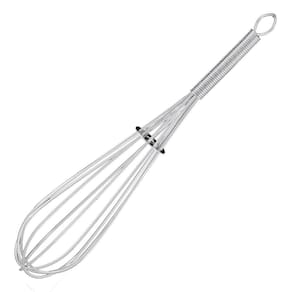 Batedor Fouet Profissional Aço Inox com Reforço 18cm Tuut Batedor Fouet Profissional Aço Inox com Reforço 18cm Tuut - Ferramenta essencial para sua cozinha profissional. Fabricado em aço inoxidável de alta qualidade, conta com exclusivo disco estabilizador que garante maior durabilidade e performance superior ao bater. Com 18cm de comprimento, possui design ergonômico e argola para pendurar, facilitando o armazenamento. Seus arames flexíveis e resistentes proporcionam batimentos perfeitos para claras em neve, cremes, mousses e molhos. O reforço central exclusivo evita deformações, mantendo os arames sempre alinhados mesmo após uso intenso. Ideal para estabelecimentos comerciais e cozinheiros exigentes que buscam qualidade e durabilidade em seus utensílios.