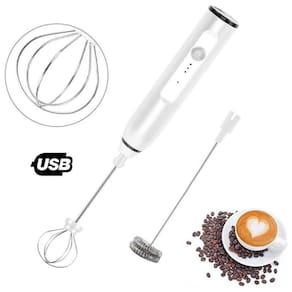Mixer portátil com corpo em aço inoxidável, motor de alta performance com 3 velocidades de giros, batedor exclusivo tipo fouet, carregamento USB, bateria interna de longa duração.Acompanha copo