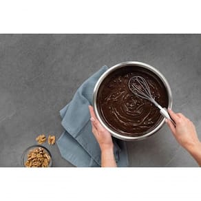 Batedor Tramontina Marffim Em Aço Inox Prepare omeletes deliciosos com eficiência e facilidade, com o Batedor Tramontina Marffim em Aço Inox. A peça é totalmente feita em aço inox e oferece muito mais resistência e durabilidade. Além disso, você pode levar o item diariamente ao lava-louças, sem comprometer a qualidade do produto. A peça perfeita para deixar a sua cozinha muito mais completa! Recomendações de Uso: - Use apenas sabão ou detergente e uma esponja macia. Outros tipos de produto como palha de aço, poderão riscar ou prejudicar o brilho da peça. - Enxágue cada item a fim de remover totalmente os resíduos dos produtos de limpeza, que, por serem abrasivos, podem danificar o inox. - Sempre que possível, use água quente, pois renova o brilho da peça. - Após a lavagem, enxugue imediatamente a peça, caso contrário, as substâncias químicas da água (cloro) poderão causar manchas. - Evite atrito entre as peças durante o processo de lavagem e no armazenamento, para mantê-la sem riscos. - Evite o do produto com superfícies quentes, pois elas provocam a descoloração do material. - Não guarde a peça em locais úmidos. A umidade também provoca manchas. Informações Adicionais:
