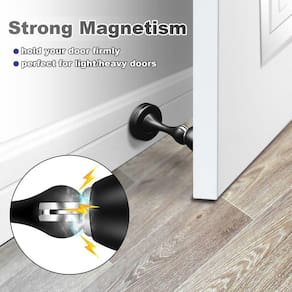 ?Protetor de parede contra danos?- A trava magnética de porta possui tecnologia integrada de travamento suave, parando e segurando qualquer porta de forma suave e silenciosa. A mola de absorção de choque não apenas ajuda a porta a parar a absorver a força de batimento e minimizar o ruído, mas segura a porta suavemente para evitar arranhões na parede ou impactados pela maçaneta.