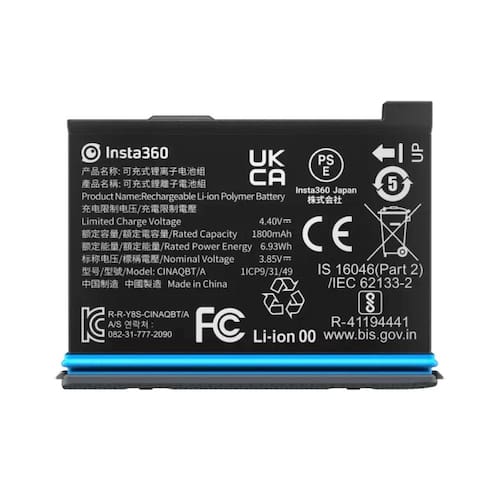 Esta bateria recarregável da insta360 apresenta capacidade aumentada em 10% para um total de 1800mah, garantindo que você capture toda a ação por até 81 minutos. Sua composição de íons de lítio pode ser recarregada em apenas 90 minutos para uso contínuo.