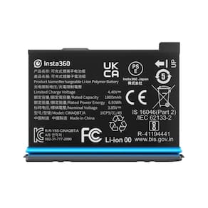 Esta bateria recarregável da insta360 apresenta capacidade aumentada em 10% para um total de 1800mah, garantindo que você capture toda a ação por até 81 minutos. Sua composição de íons de lítio pode ser recarregada em apenas 90 minutos para uso contínuo.
