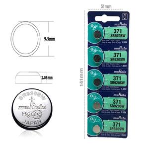 Marca: murata Modelo tamanho: 371 Material: óxido de prata (ag2o/zn) - tipo moeda 1,55v Quantidade: 5 baterias Diâmetro: 9.5 x 2.0 Capacidade nominal: 40 (mah)