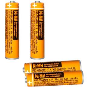 Battery Type: Ni-MH AAA Rechargeable batteryVoltage: 1.2V Capacity: 550mAh Color: Yellow Quantity: 4pcs Fit for Panasonic Cordless Phone HHR-55AAABU Replacement Battery for Panasonic Cordless Telephones Works for almost all Panasonic phones that use AAA batteries For Panasonic: HHR-55AAABU KXTG1031S, KXTG1032B, KXTG1032BP, KXTG1032S, KXTG1033S, KXTG1034B, KXTG1034S, KXTG1035S, KXTG1061M, KXTG1062M, KXTG4321B, KXTG4322B, KXTG4323B, KXTG4324B, KXTG6311S, KXTG6312S, KXTG6313S, KXTG6322S, Kxtg6323PK, Kxtg6323s, Kxtg6324, Kxtg6324s, Kxtg6434pk, Kxtg6440pk, Kxtg6473pk, Kxtg8231b, Kxtg8232B, Kxtg93331T, Kxtg9332s, Kxtg9332T, Kxtg9333PK, Kxtg9333T, Kxtg9334PK, Kxtg9334T, KXTG9341T, KXTG9342T, KXTG9343S Kxtg9343t, Kxtg9344pK, Kxtg9344T, Kxtg9345BP, Kxtg9345pk, Kxtg9361b, Kxtg9371b, Kxtg9372B, KXTG9381T, KXTG9382T, Kxtg9391T, Kxtg9392T, KxTGA101S, KxTGA106M, KxTGA430B, KXTGA820B, KxTGA939T, KXTH12111B, KXTH1212B