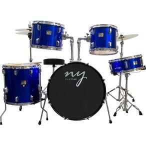 Bateria Acústica 2T Cromada Azul com Banco NY-F1RST