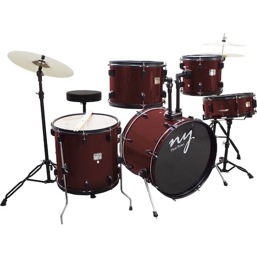 Bateria Acústica New York F1rst, com ferragens pretas e acabamento metalizado. Especificações- Marca: NY F1rst- Modelo: 2TE- Cor: Vinho- Ferragens: Pretas- Peles: Transparentes- Caixa: MadeiraComponentes do kit:- 01 Tom 10” x 9”- 01 Tom 12” x 9” - 01 Caixa 14” x 5,5”- 01 Surdo de Chão: 14” x 14”- 01 Bumbo 20” x 14”- 01 Estante Reta Retrátil- 01 Estante de Caixa- 01 Máquina de Chimbal- 01 Banco- 01 Pedal de Bumbo- 02 Pratos Chimbal - 01 Prato Ataque- 02 Baquetas- Dimensões da Embalagem (AxLxP): 57 x 59 x 78 cm*Imagens meramente ilustrativas