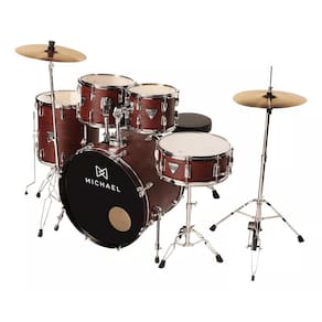 A bateria acústica Michael Trinity DMT322, com bumbo 22, se destaca pelo visual arrebatador e timbre moderno. É construída com casco em poplar e vem com 5 peças, com destaque para os tons rasos e a caixa com pele porosa. Possui ainda pés extralongos no surdo e telescópico no bumbo, além de caixa com automático. Sua configuração é completa! Já vem com estante de prato, máquina de chimbal, pratos (hit hat e crash), pedal de bumbo e par de baquetas! É só abrir a caixa, montar e sair tocando.
