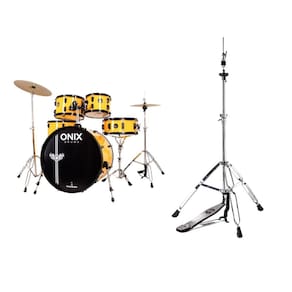 CARACTERÍSTICAS Pé de bumbo telescópio Caneca de fixação refprçada Pele de bumbo com anel abafador Cascos de 7 MM Caneca tipo abraçadeira Automático de gaveta Tom Holder - Joint Ball Travas com Memórias Base de banco fundida Banco reforçado Estante de caixa com cesto Borboleta "Safecymbals" Pedal de bumbo profissional Base de metal Corrente dupla Sistema de Mola com Rolamento HI HAT 14" e Crash/Ride 18" Estante Reforçada