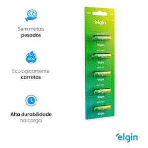 - Marca: Elgin; - Referência: 123270-7; - Voltagem: 12V; - Alta Duração; - 0% de Cádmio e Mercúrio; - Econômica; - Blister com 5 unidades; - Não agridem o meio ambiente porque têm 0% de metais pesados em sua composição; - Foram aprovadas em todos os quesitos e têm ótima relação custo/benefício. Você economiza e ainda conta com pilhas de alta qualidade; - São testadas periodicamente por laboratórios credenciados pelo INMETRO, para garantir a qualidade e conformidade com a resolução Conama 401; - Validade: 5 anos.