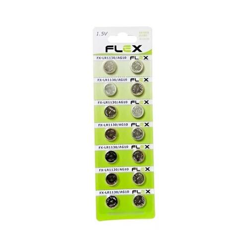 A bateria botão Flex FX-LR1130 é uma célula alcalina de 1,5V, frequentemente utilizada em dispositivos eletrônicos de pequeno porte, como relógios, calculadoras e brinquedos.