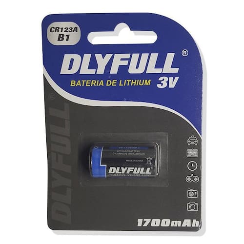 Bateria cr123a 3v dlyfull lithium - especificações tecnicas Tensão da bateria de lítio 1 de cr123a: 3.0 v Capacidade avaliado: 1500 mah Tamanho: 934 1734.5 mm - aplicação Relógios, calculadoras, computadores portáteis, chaves elétricas, dicionários eletrônicos, registradores, cartões do ci, cartões de memória para o equipamento do tratamento médico, etc. - garantia Garantia de 3 meses apartir da data de recebimento do produto. - termos da garantia Produto devera ser enviado para o fabricante para analise tecnica, após o laudo tecnico (5 dias uteis), caso o laudo aponte um defeito de fabricaçao o cliente recebera um produto novo. - acompanha o produto 1 cartela contendo 1 unidade de cr123a Marca: Dlyfull
