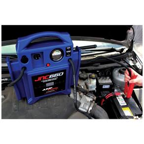 1.7lificadores de pico 4ères de arranque. Carregador embutido. Tipo de Carregador Automático A tecnologia de baterias PROFORMER foi projetada para fornecer saída de potência extremamente alta, potência de acionamento prolongada e uma longa vida útil cabos AWG n 2 para serviços pesados de 46 polegadas cobre isolado voltímetro fornece status de carga da bateria onboard tomada DC para alimentar acessórios de 12 volts Entrada CC para recarregar a bateria interna Quando a unidade não estiver em uso, recomendamos que a bateria seja carregada pelo menos a cada 30 dias. Jump N Carry JNC660 Arrancador de Salto de 12 Volts Ampère de 1700 Marca: Não Informado
