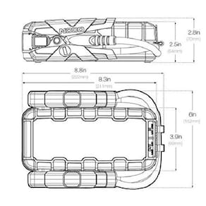 - Multifuncional – É um acionador de partida de carro, banco de energia portátil e lanterna de LED. Recarregue smartphones, tablets e outros dispositivos USB. É facilmente recarregável a partir de qualquer porta USB alimentada em 6 horas a 2,1 amperes. Uma lanterna LED integrada de 400 lúmens com sete modos de luz, incluindo estroboscópio de emergência e SOS. Além disso, uma porta de saída de 12 volts e 15 A para alimentar qualquer dispositivo de 12 VDC, como infladores de pneus, inversores e muito mais.