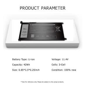 - ?ESPECIFICAÇÃO? Modelo da bateria: YRDD6; Tipo de bateria: íons de lítio; Tensão: 11,4 V; Capacidade: 42 Wh; Células: 3 células; Cor: Preto com duas chaves de fenda ; Tamanho (C x L x A): 17,4 x 8,9 x 0,6 cm; Condição: 100% novo do fabricante.