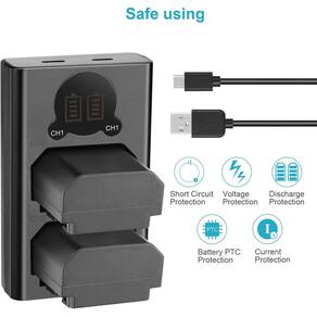Bateria de reposição NEEWER NP-FZ100 2280mAh e carregador com tela LCD, 2 pacotes, compatíveis com câmeras Sony A1, A9 II, A7R III, A7R IV, A7R V, A7S III, A7 III, A7 IV, A6600, A7C - COMPATIBILIDADE: 100% compatível com a bateria de íon de lítio Sony NP-FZ100. Compatível com câmeras Sony A1, A9, A9 II, A7R III, A7R IV, A7R V, A7S III, A7 IV, A6600, A7C e VG-C3EM, VG-C4EM Grip; Nota: Quando as câmeras FX3, FX30, A7C II, A7CR e ZV-E1 são atualizadas para a versão mais recente do firmware, a bateria ainda pode alimentar a câmera, mas o nível da bateria não será exibido na tela. - BATERIA DE BACKUP: oferece uma solução de backup completa; apenas algumas horas para recarregar simultaneamente as duas baterias com a entrada micro-USB de 5V/2,1 A; saída: 8,4 V/500 mA; íon de lítio recarregável de 7,2 v 2280 mAh com célula premium para maior vida útil da bateria sem efeito de memória; Nota: a eficiência de carregamento é determinada pela corrente e tensão de entrada - VÁRIAS OPÇÕES DE CARREGAMENTO: carregue com um carregador USB de parede, carregador de celular, carregador de carro, laptop ou o banco de energia oferece mais opções do que um carregador de bateria padrão; recarregue dentro da câmera ou com um carregador de entrada de 2,1 A para carregamento ideal - Leve: apenas 23 mm de espessura; a tela LCD pode mostrar claramente o status de carregamento e energia; economiza espaço e é conveniente para sua viagem, negócios e exercícios ao ar livre - SISTEMA DE PROTEÇÃO INTELIGENTE SEGURO: carregamento rápido com proteção de vários circuitos para evitar sobrecarga da bateria, alta temperatura, proteção contra sobrecorrente, proteção contra sobretensão, proteção contra curto-circuito
