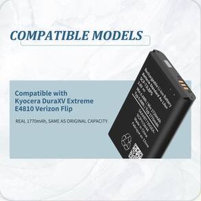 - ?Modelos compatíveis?: Compatível com Kyocera DuraXV Extreme E4810 E4810PTT E4810NC E4810S E4810TM E4810(AT&T)/Kyocera DuraXE Epic E4830 E4830NC E4830PTT E4830S E4830S 4830TM Bateria flip para celular E4830(Verizon) E4830(FirstNet)/Extreme+ E4811 Verizon Flip (Número da peça: SCP-73LBPS)