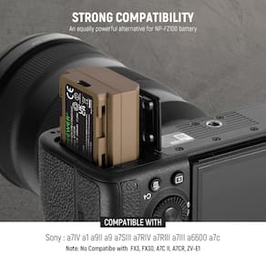 NP-FZ100?Uma opção alternativa igualmente poderosa para NP-FZ100, este acessório de câmera recarregável de íon de lítio é perfeitamente compatível com Sony A1, A9, A9 II, A7R III, A7R IV Câmeras digitais sem