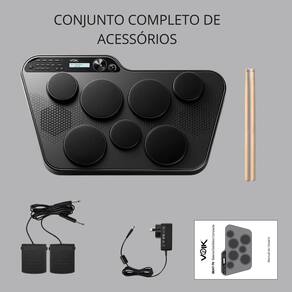 A Bateria Eletrônica Portátil 7 Pads Voik BEAT-70 com Baqueta é perfeita para bateristas que buscam praticidade, diversão e evolução musical em um único equipamento. Compacta e leve, ela permite tocar em qualquer lugar, seja em casa, em estúdios ou em viagens, sem gerar ruídos, graças à saída para fones de ouvido. Com 7 pads sensíveis ao toque e efeito reverb, a BEAT-70 oferece uma experiência sonora realista, trazendo profundidade e dinâmica para cada batida.