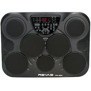 A bateria portátil REVAS PB-350 vem com 7 pads sensitivos e entrada para dois pedais, 50 kits de bateria/percussão e 265 sons específicos de instrumentos de percussão. O instrumento possui alto-falantes,funciona também com pilhas, proporcionando grande praticidade para usar em qualquer lugar.