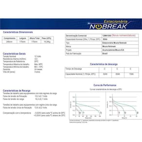 BATERIA ESTACIONÁRIA MOURA NOBREAK - 12V 60Ah - 12MN60 ou MN1000