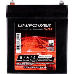Bateria Estacionária Selada 12v 5ah Vrla Up1250 Unipower [f002] A Bateria Estacionária Selada 12V 5Ah VRLA UP1250 é o modelo ideal para aplicações em caixas de som, equipamentos médicos e nobreaks. Atualmente a UNIPOWER é líder no Brasil em baterias estacionárias. Fornece soluções completas em armazenamento de energia que incluem um portfólio completo para as mais diversas aplicações como telecom, nobreaks (UPS), sistemas de segurança, sistemas de iluminação de emergência, sinalização, equipamentos médicos e entre outros.