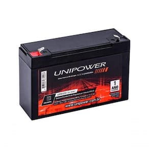 Bateria Estacionária Selada 6v 12ah Vrla Up6120 Unipower A Bateria Estacionária Selada 6V 12Ah VRLA UP6120 é o modelo ideal para aplicações em brinquedos eletrônicos. Atualmente a UNIPOWER é líder no Brasil em baterias estacionárias. Fornece soluções completas em armazenamento de energia que incluem um portfólio completo para as mais diversas aplicações como telecom, As baterias seladas VRLA com a tecnologia chumbo-ácido podem ser viradas em qualquer posição que não há vazamento do ácido. Esse tipo de bateria possui válvulas de segurança que aliviam a pressão interna da bateria caso algo esteja errado no produto ou no carregador evita que ela exploda causando ferimentos e fogo. Voltagem:6V Amperagem:12Ah Dimensões:151x50x94x100mm (CxLxAxAT) Pesquisa:bateria|selada|6v|12a|up6120|up 6120|up-6120 - Posição: C - Composição Chumbo ácido VRLA - Tecnologia AGM - Excelente custo/benefício - Máxima qualidade e alta tecnologia - Vida útil projetada de 3 a 5 anos - Livre de manutenção - Pode ser utilizada em diversas posições - Garantia de fábrica: Itens até 12AH ? 12 meses / acima de 12ah 18 meses - Menor índice de RMA do mercado A Bateria Estacionária Selada 6V 12Ah VRLA UP6120 é o modelo ideal para aplicações em brinquedos eletrônicos. Atualmente a UNIPOWER é líder no Brasil em baterias estacionárias. Fornece soluções completas em armazenamento de energia que incluem um portfólio completo para as mais diversas aplicações como telecom, As baterias seladas VRLA com a tecnologia chumbo-ácido podem ser viradas em qualquer posição que não há vazamento do ácido. Esse tipo de bateria possui válvulas de segurança que aliviam a pressão interna da bateria caso algo esteja errado no produto ou no carregador evita que ela exploda causando ferimentos e fogo. Voltagem:6V Amperagem:12Ah Dimensões:151x50x94x100mm (CxLxAxAT) Pesquisa:bateria|selada|6v|12a|up6120|up 6120|up-6120 - Posição: C - Composição Chumbo ácido VRLA - Tecnologia AGM - Excelente custo/benefício - Máxima qualidade e alta tecnologia - Vida útil projetada de 3 a 5 anos - Livre de manutenção - Pode ser utilizada em diversas posições - Garantia de fábrica: Itens até 12AH ? 12 meses / acima de 12ah 18 meses - Menor índice de RMA do mercado Ean: 7893007670207