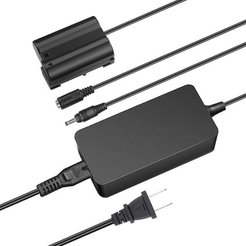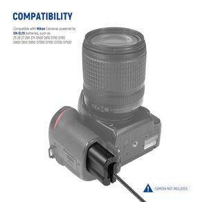 reposição para a bateria EN-EL15?Este conjunto de carregador de bateria é um acoplador de alimentação fictícia substituto de suprimentos para a bateria EN-EL15, compatível com as câmeras Nikon Z5 Z6 Z7 Z6II Z7II D500 D610 D750 D780 D800 D810 D850 D7000 D7100 D7200 D7500 -?Horário de trabalho ilimitado?Precisa manter sua câmera ligada por horas, mas se preocupa com a falta de bateria? Obtenha esta bateria fictícia acopladora com um adaptador de alimentação AC para alimentar sua câmera por longas horas de filmagem