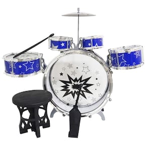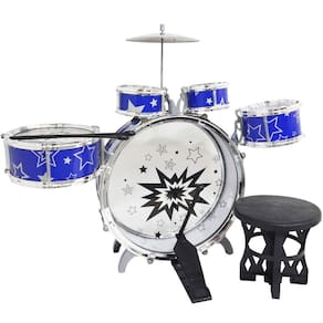 Itens inclusos: 1 Bumbo, 2 Tambor, 2 Tons, 1 Prato chimbal, 2 Baquetas, 1 Banco