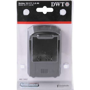 Marca: dwt linha intercambiável conteúdo da embalagem: 1 bateria indicada para a linha de ferramentas a bateria intercambiável dwt. Carregadores indicados: carregador de bateria 18 v icbd 1805 6014180500 ou carregador de bateria carga rápida 18 v icbd 1806 6014180600 . Bateria de íons de lítio, garantindo alta eficiência de operação. Possui indicador de nível de carga. Os três leds vermelhos indicam o status de carga da bateria. Um led aceso: indica baixa carga; dois leds acesos: metade da carga; e três leds acesos: bateria carregada. Possui entrada de ar para sistema de refrigeração e base emborrachada que ajuda a prevenir riscos em superfícies e absorver impactos leves. Tensão v : 18,0 vtipo de bateria: bateria de íons de lítiocapacidade da bateria a : 2,0 ahgarantia - e cdc : legal: 90 dias + contratual: 9 meses Marca: Não Informado