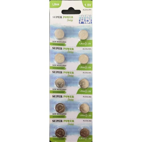 Bateria Lr44 Super Power alcalina cartela com 10 unidades Bateria Botão 1,5v LR44 Flex é Compatível com: Calculadoras; Calculadoras; Agendas eletrônicas; Placa mãe de computadores; Controles remotos; Chaves de carros; Entre outros. Marca: Não Informado